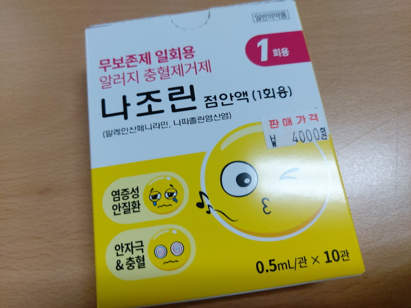 약국에서 추천받은 안약은 바로 나조린이란 안약이였습니다. 보통 눈에 이물질이 들어가면 흐르는 물로 눈을 씻어주거나 인공눈물을 넣으면 정상으로 돌아오는 경우가 많았습니다.